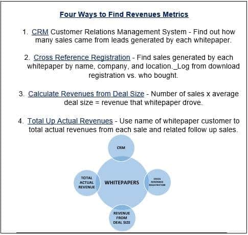 Also, companies are beginning to want to know specifically how much revenue is being generated by each whitepaper. They want to know how many downloads, leads, sales and revenues result from the document. They want to be able to say, ‘We can attribute $3.2 M in revenues directly to our XYZ-Whitepaper Campaign.