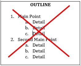 • Steer clear of outlines for written content. If you’re like most auditory learners, you’d rather run a mile through Death Valley than sit down and read a bullet-pointed outline of your next whitepaper, web page, or annual report.  To you, planning and organizing happens best during a face-to-face meeting, phone call, or Skype session. Set up calls with your writing team. Verbally confirm that you’re on the same page, about what you’ve seen so far, and give them the green light to start writing a draft.
