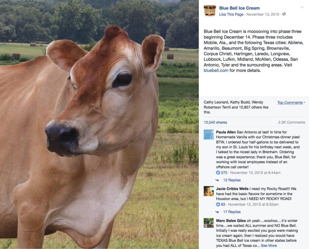 Blue Bell made a point of communicating with its customers through social sites like Facebook.