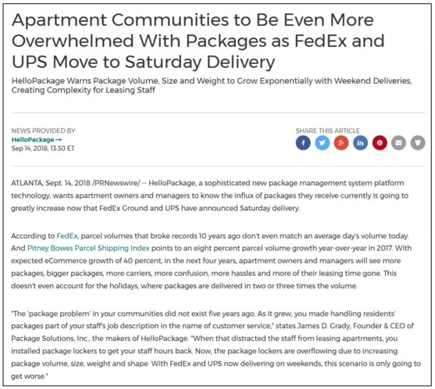 - The headline and first paragraph draw attention to an easily relatable problem – namely, that of keeping track of more and more packages thanks to the expansion of delivery options.