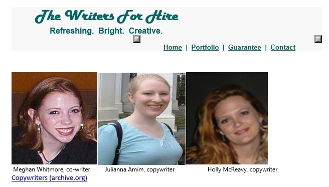 The young writing agency’s site became thewritersforhire.com, and TWFH blossomed, adding more writers as it added more clients.