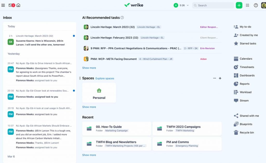 Wrike is a project management tool and collaborative work platform that offers a wide variety of project management tools, including: