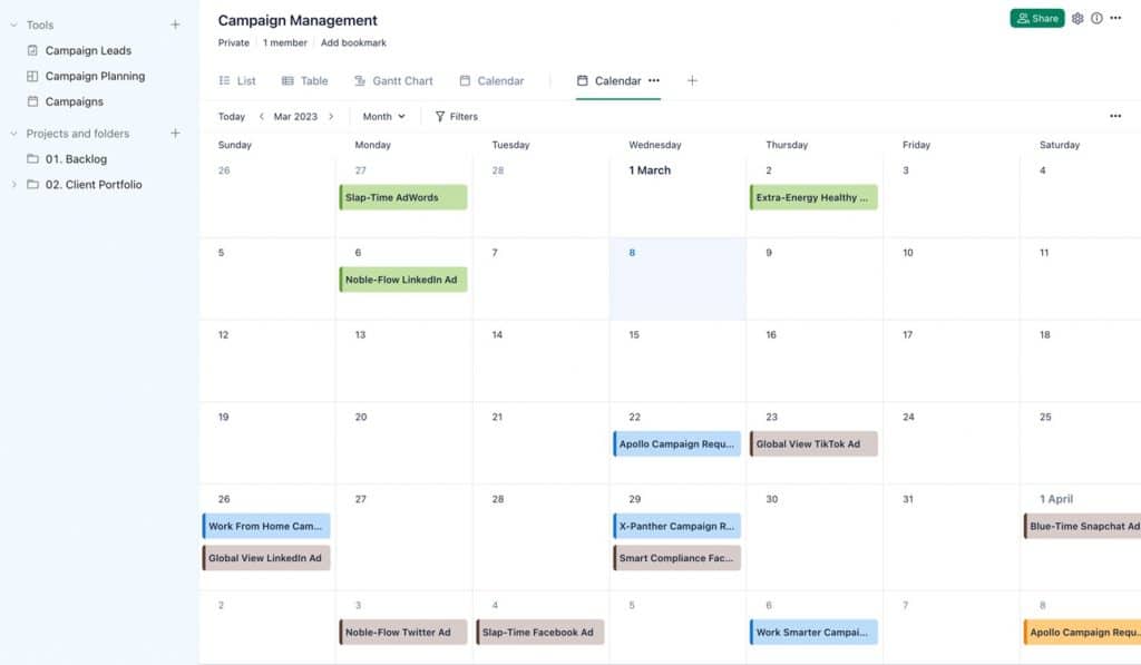 A content calendar keeps your campaign tasks on track up to the deadline. It also shows the work already completed and gives timelines for specific tasks.