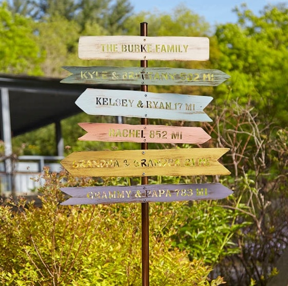 A Personalized Family Member Locator Signpost is a fun conversation piece.