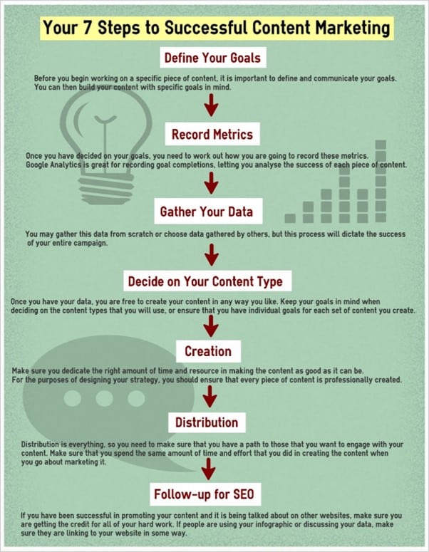 Below are seven steps put forward by the Content Marketing Institute to consider when you start planning your content strategy.