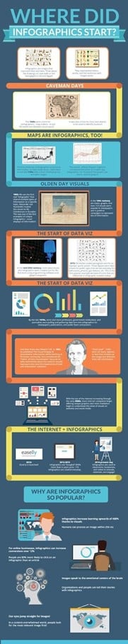 The infographic to the left, by Business 2 Community, provides a brief overview of the history of the infographic, and is a great example of one.
