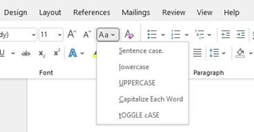 2. Now, go to the “Aa” on your tool bar and click on the arrow pointing down. This will give you a menu of case options.