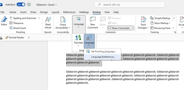 Word’s “Languages” feature allows you to add languages to your spell checker so that they no longer come up as errors (and you can ensure you are spelling them correctly!).