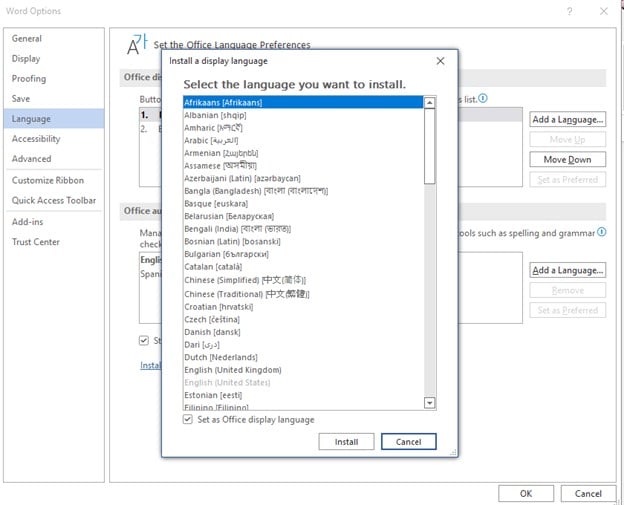 To update the languages in Word: