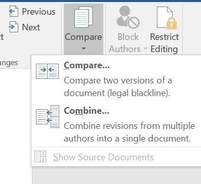 1. Make sure both versions of the document are open in Word.