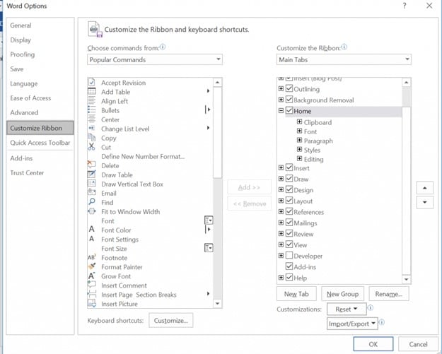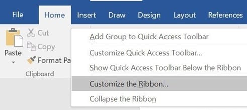 2. Choose “Customize the Ribbon.”