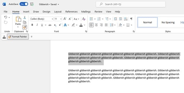 2. Click on “Format Painter” in the toolbar.