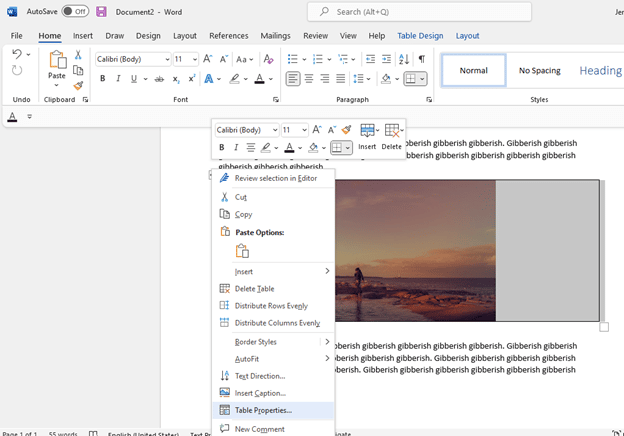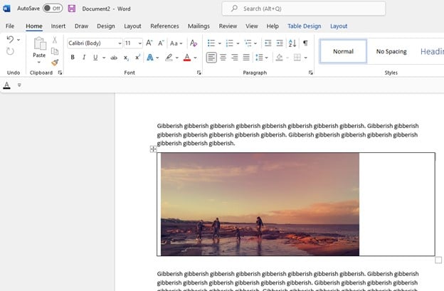 However, fixing this issue is as easy as simply inserting a table before you insert a photo. That way, when you insert your images, everything will fall (and stay) in place. Here’s how: