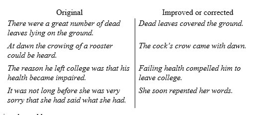 Note, in the examples above, that when a sentence is made stronger, it usually becomes shorter. Thus, brevity is a by-product of vigor.