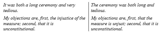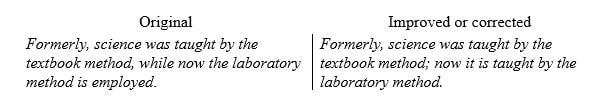 Perhaps you would have successfully corrected or improved each of the above, but the examples themselves show how one rule, “Express coordinate ideas in similar form,” has included several related rules and provided clear and compelling examples.