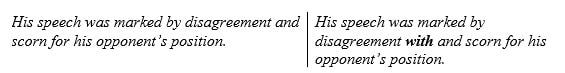 Some words require a particular preposition in certain idiomatic uses. When such words are joined in a compound construction, all the appropriate prepositions must be included, unless they are the same.
